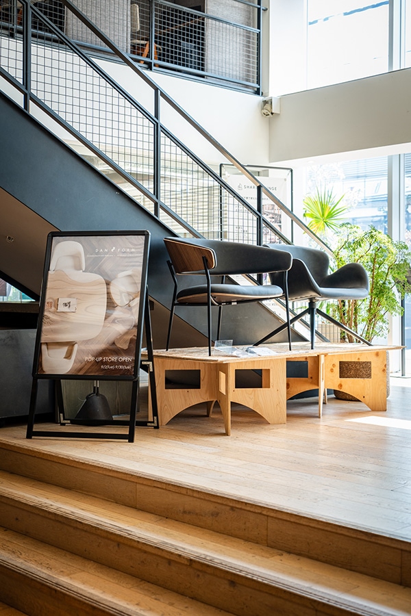 ラウンジチェアが並んだDAN-FORMのPOP-UP STORE。